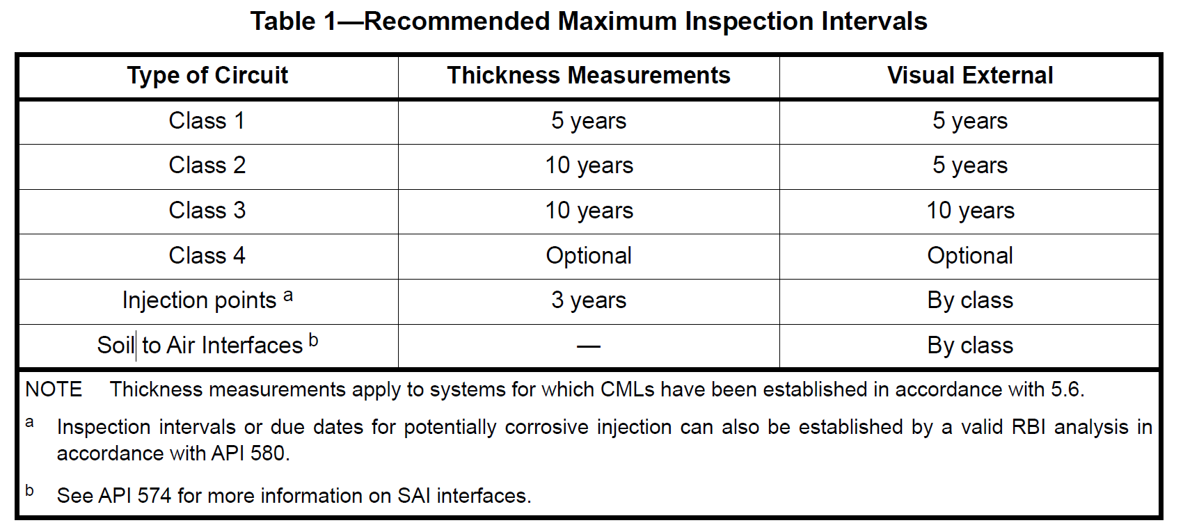 6.3.3 Table 1 -Recommended Maximum Inspection Intervals.